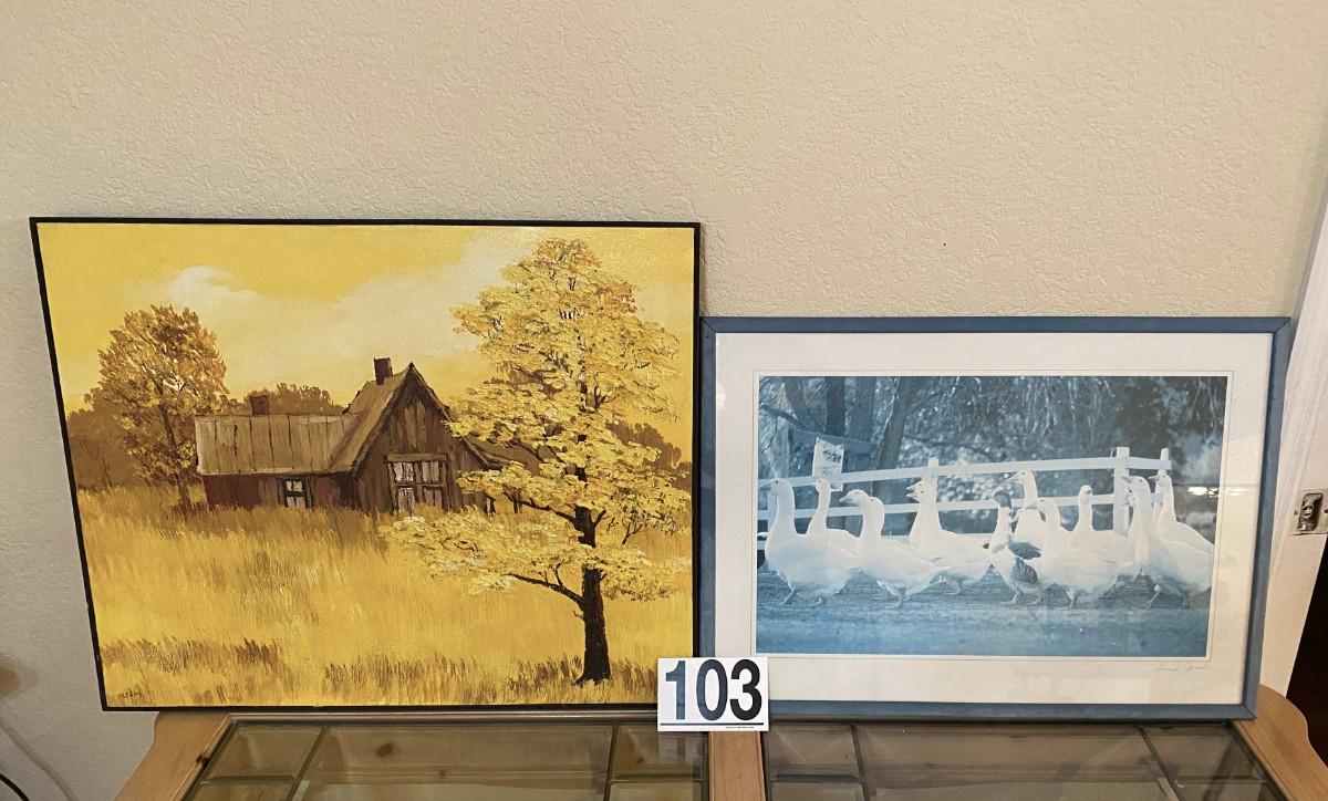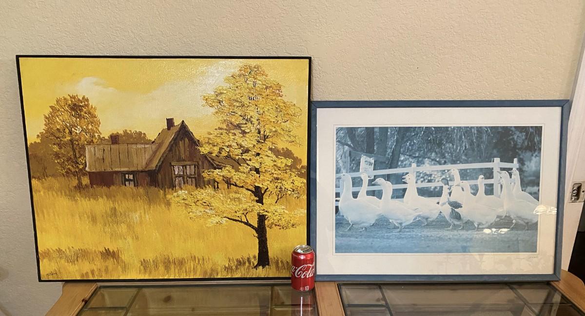 Farmhouse is oil on canvas & duck print. Measurement: 24"H x 30 1/2"W (farmhouse)