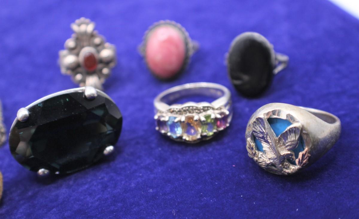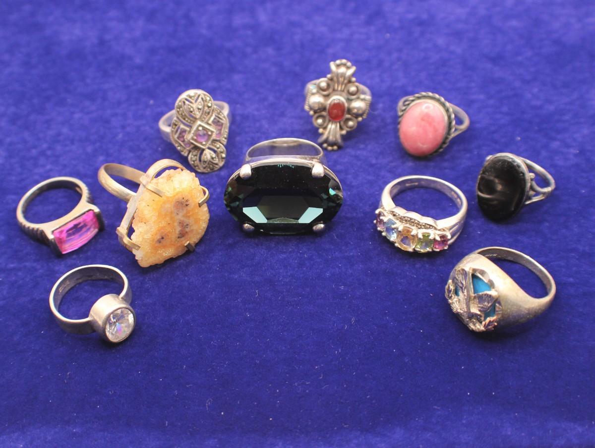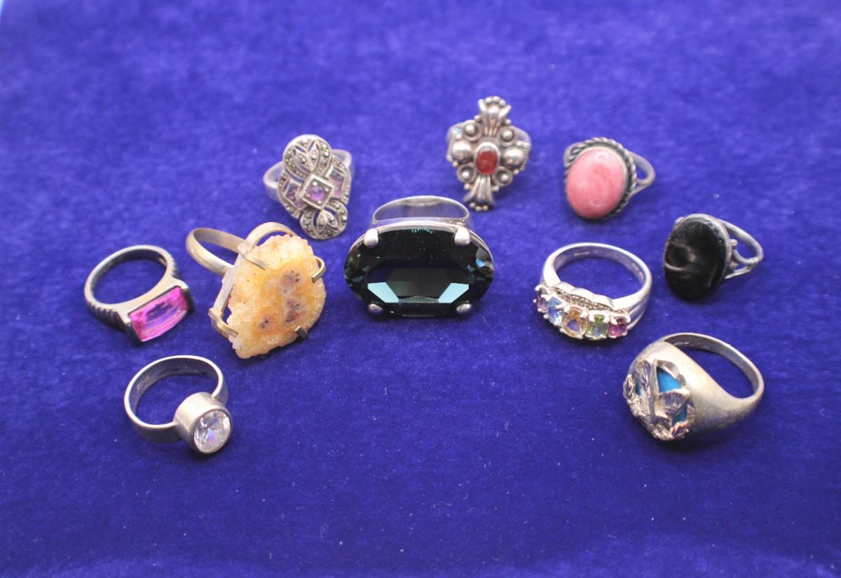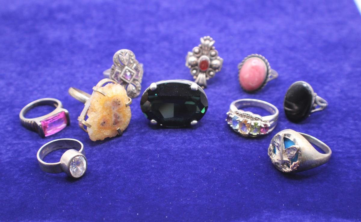 LOT#104: 10 Marked and/or Tested .925 Rings Lot #6 [68g]