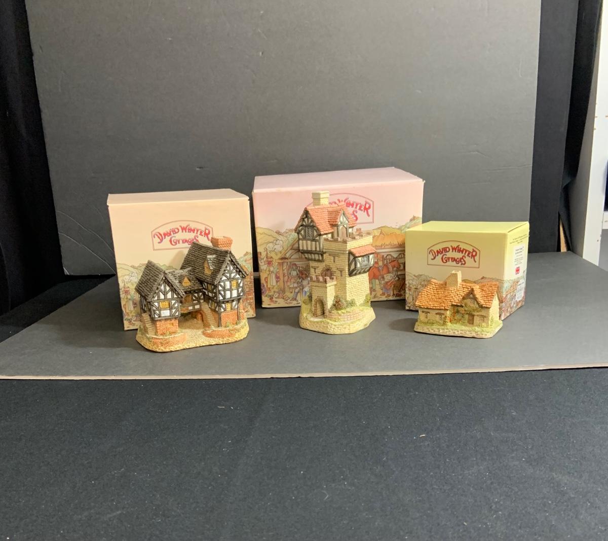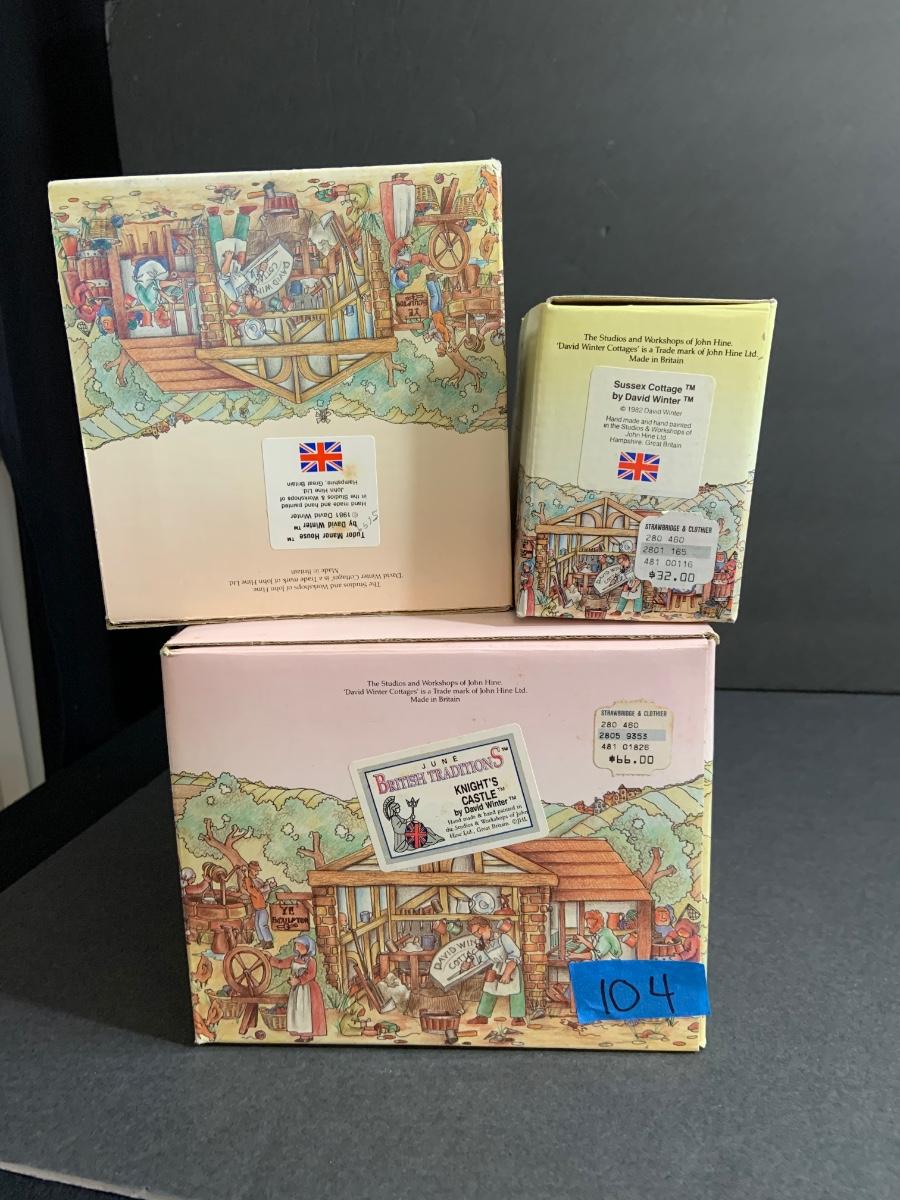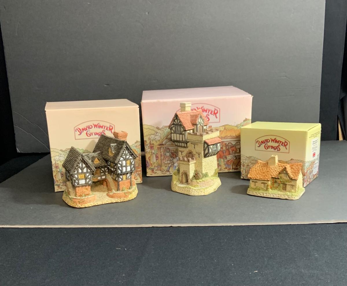 Lot:104: Lot of 3 David Winter Cottage -Tutor Manor House; Sussex Cottage; Knights Castle.