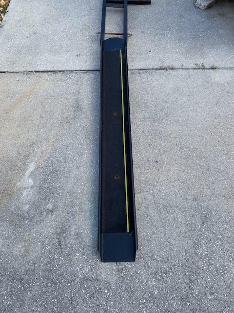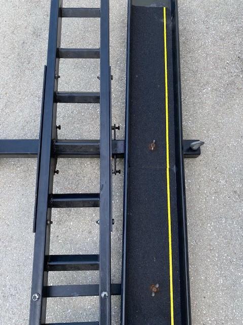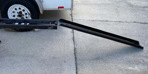 Breaks down to three pieces. Has ramp. Fits 2" hitch.