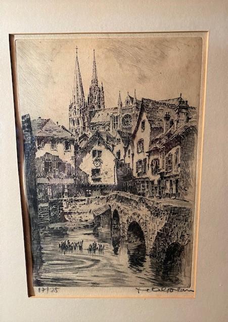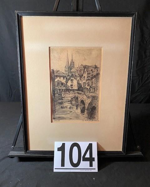 LOT#104LR: Illegibly Signed Numbered Etching (Chartres Cathedral France?)