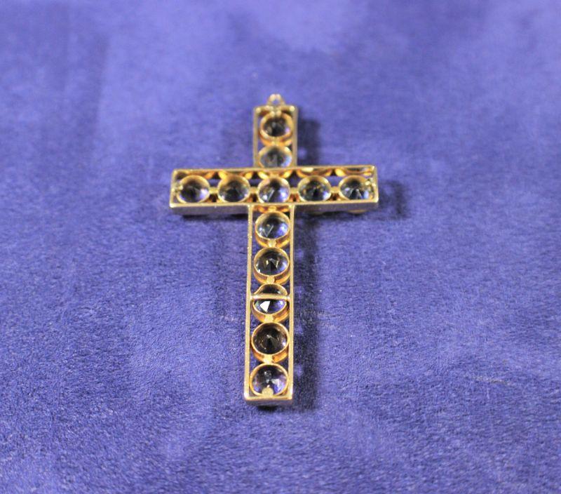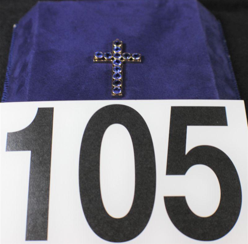 LOT#105: Tests 10K Gold Cross with Believed to be Royal Topaz Stones 5.4g