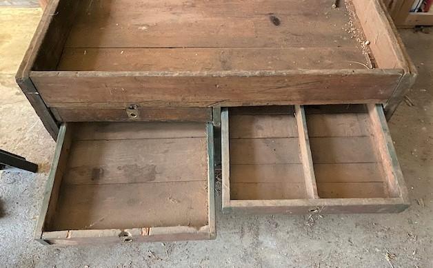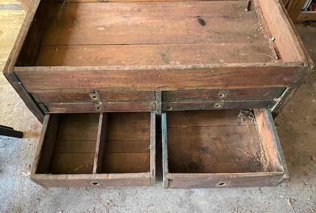 6 drawers. Top lifts open for additional storage. Estimated total lot weight: 75lbs. Measurement: 42"L x 24"D x 22"H