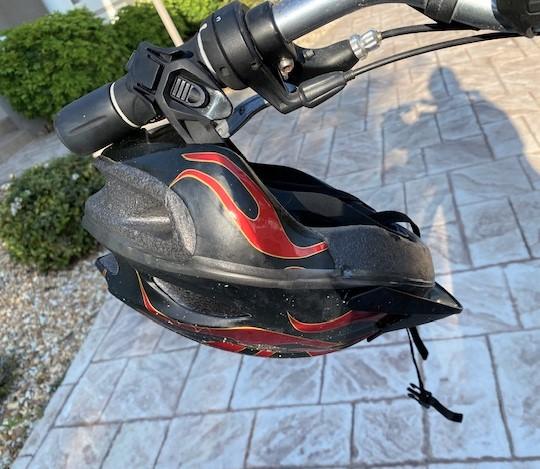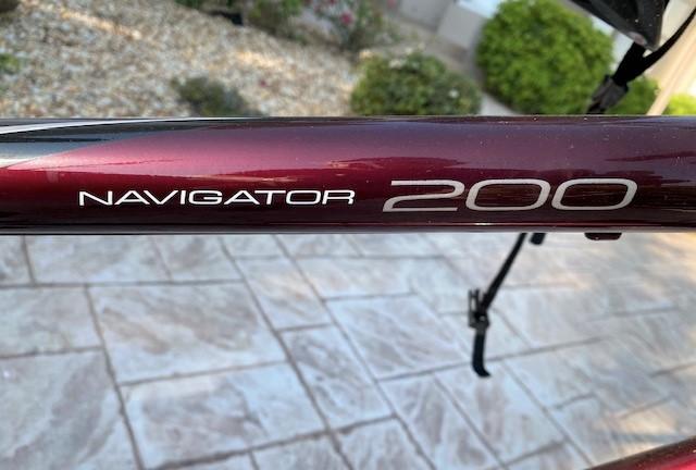 Navigator. Appears to be hybrid. Comes with 2 helmets and saddlebags.