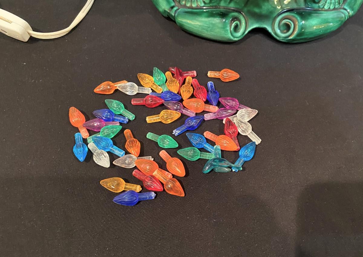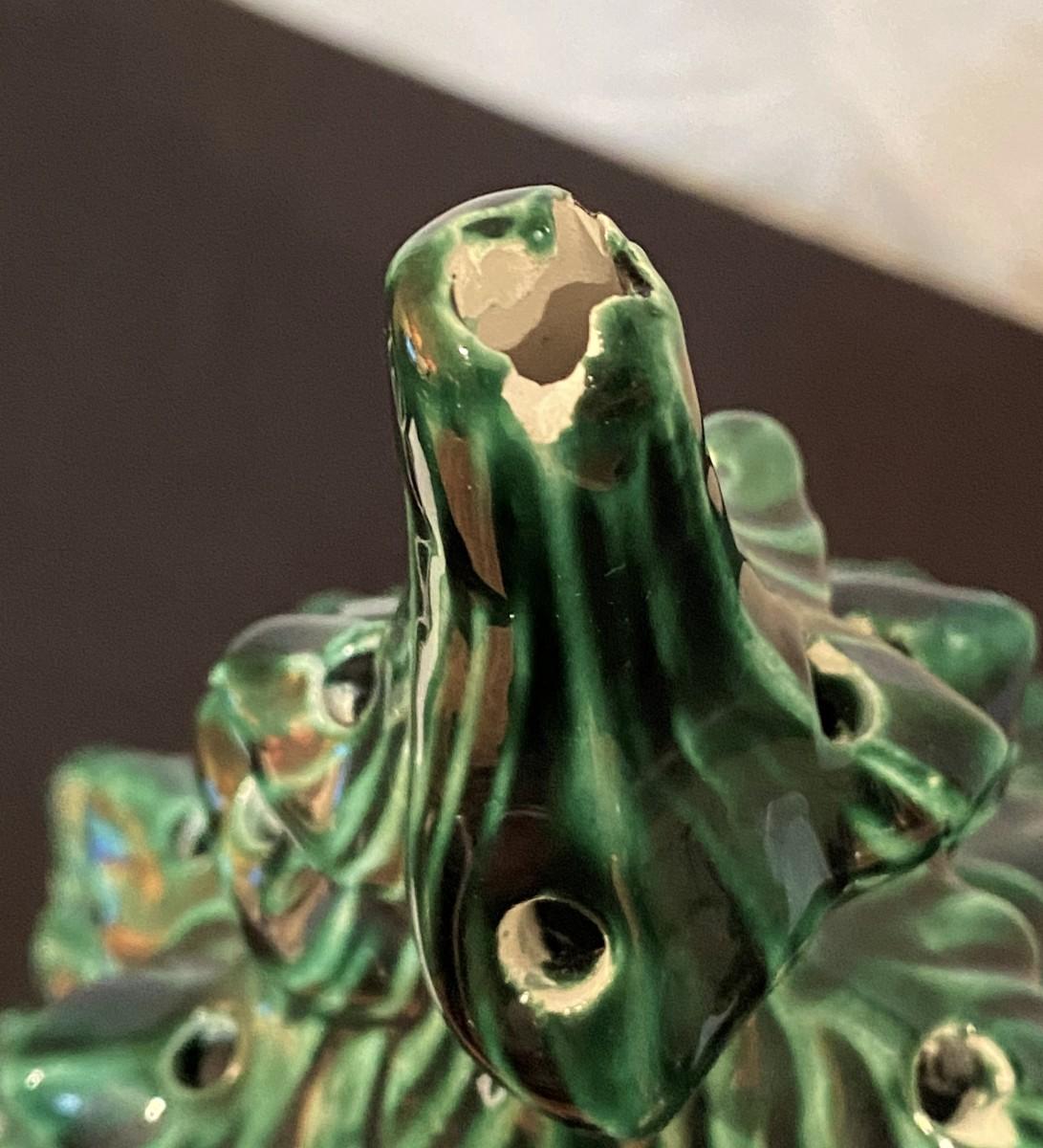 Powers on at time of cataloging. Small chipping at top of tree (pictured) Measurement: 16"H x 12"W (tree itself)
