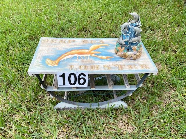 Includes small dolphin table fountain. Fountain is untested. Table is weathered. Measurement: 24"L x 12"W x 15"H (table)