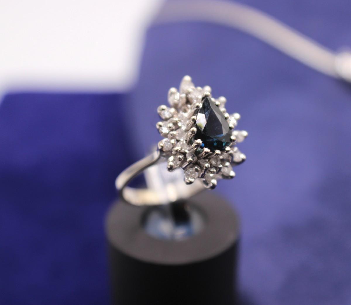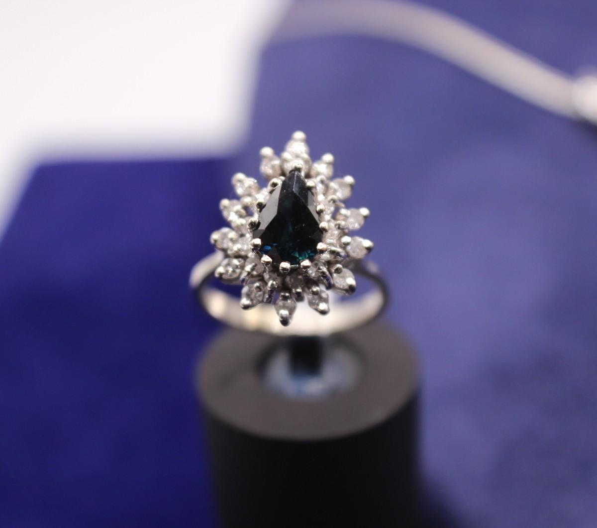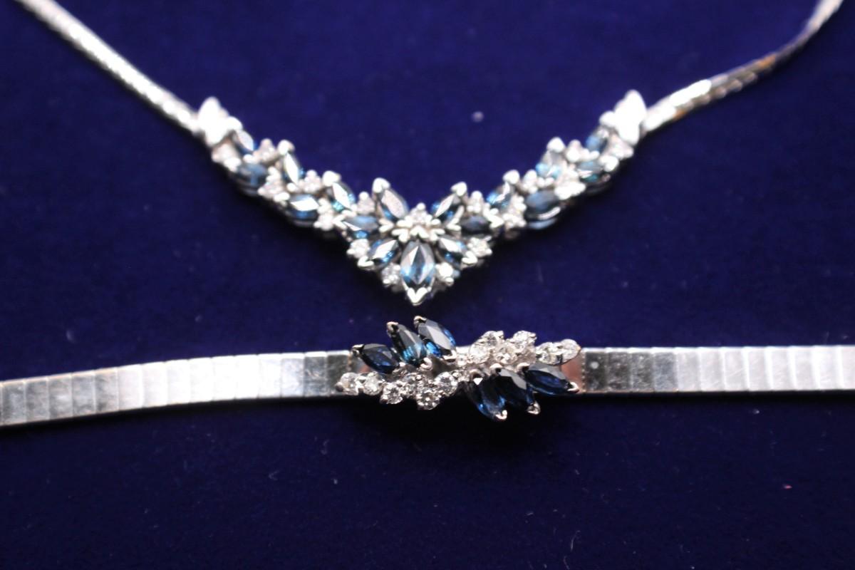 LOT#107: Stamped 14K Italy White Gold "Sapphire" & "Diamond" Set [26.4g]