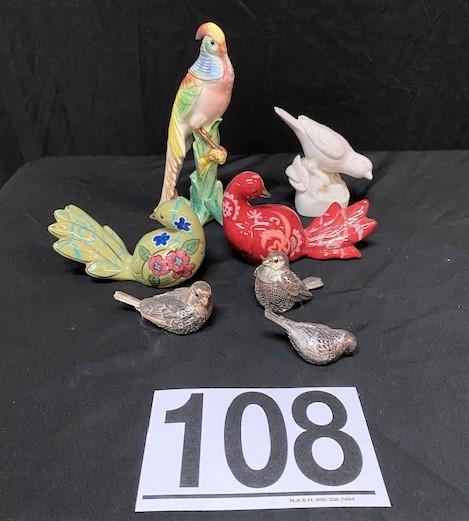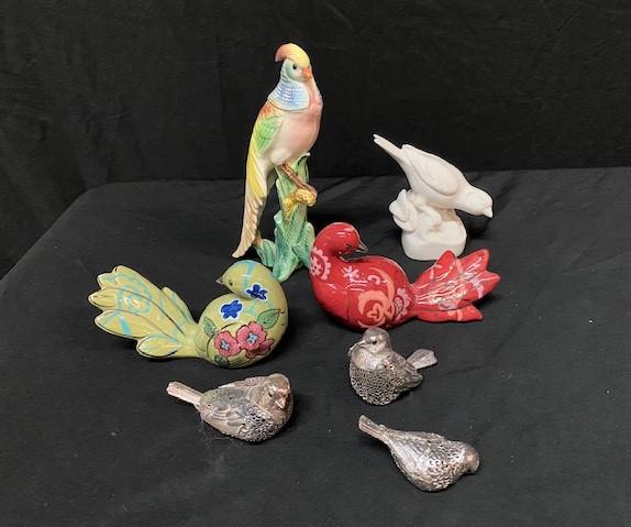 Multicolored glazed & silver colored birds. Estimated total lot weight: 7lbs. Measurement: 8"H x 6"W (largest)
