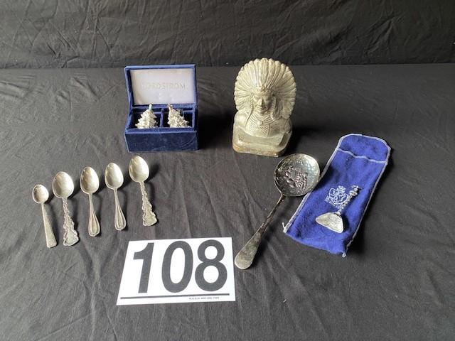 LOT#108: Sterling Silver & Silver-Plate Lot with Antique Bookend [102g]