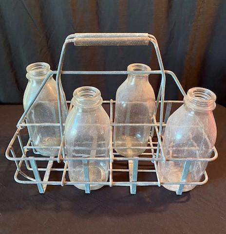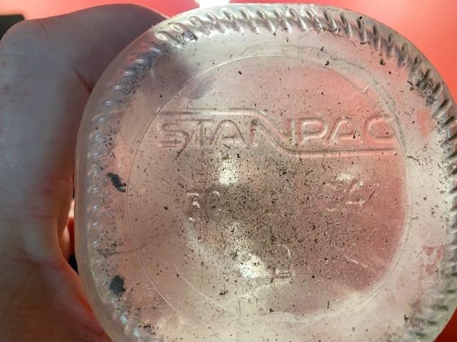 Three Stan Pac bottles and one unnamed bottle in metal caddy.