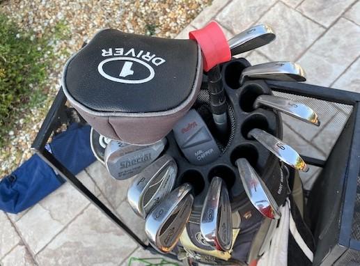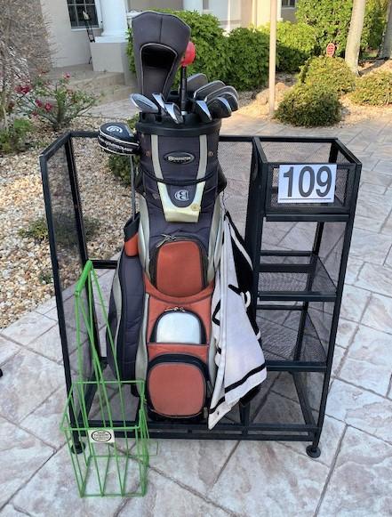 Includes set of Tourist Special Irons, Suncast golf storage, and more. Measurement: 38"H x 32"W x 10"D (storage)