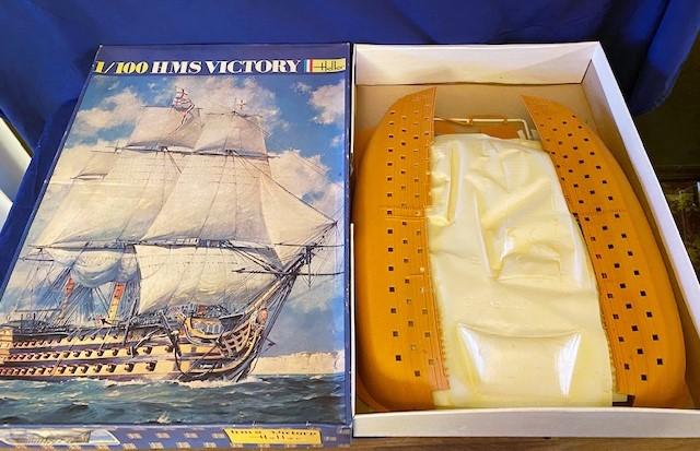 "HMS Victory." NOS. 1:100 scale. Estimated weight of lot: 5 lbs. Measurement: 29"H x 20 1/2"W x 5"D