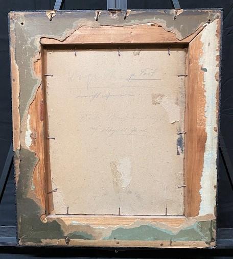Oil on board. Ebonized frame. Measurement: 12 1/2"W x 14"H (Frame)