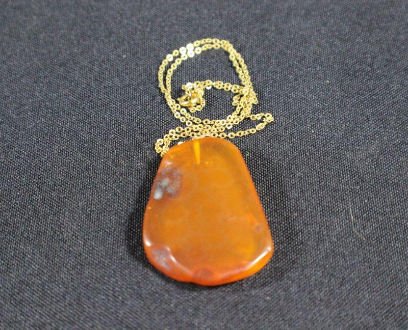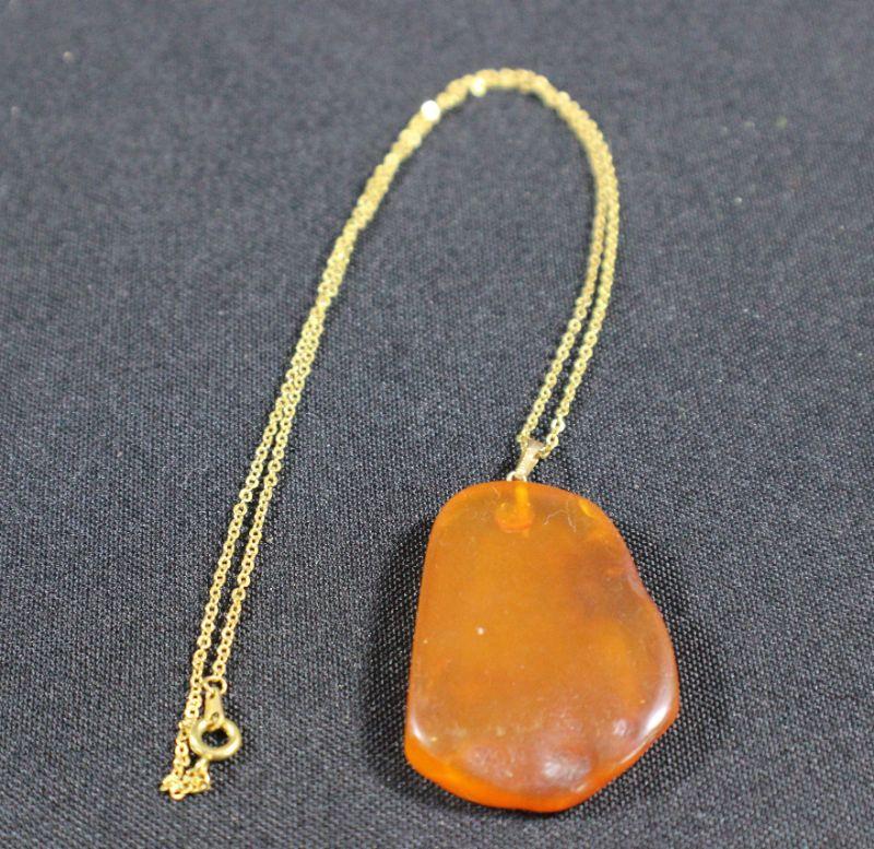 LOT#110: Natural Amber Pendent with 14K Gold Filled Chain
