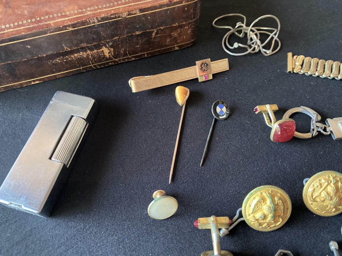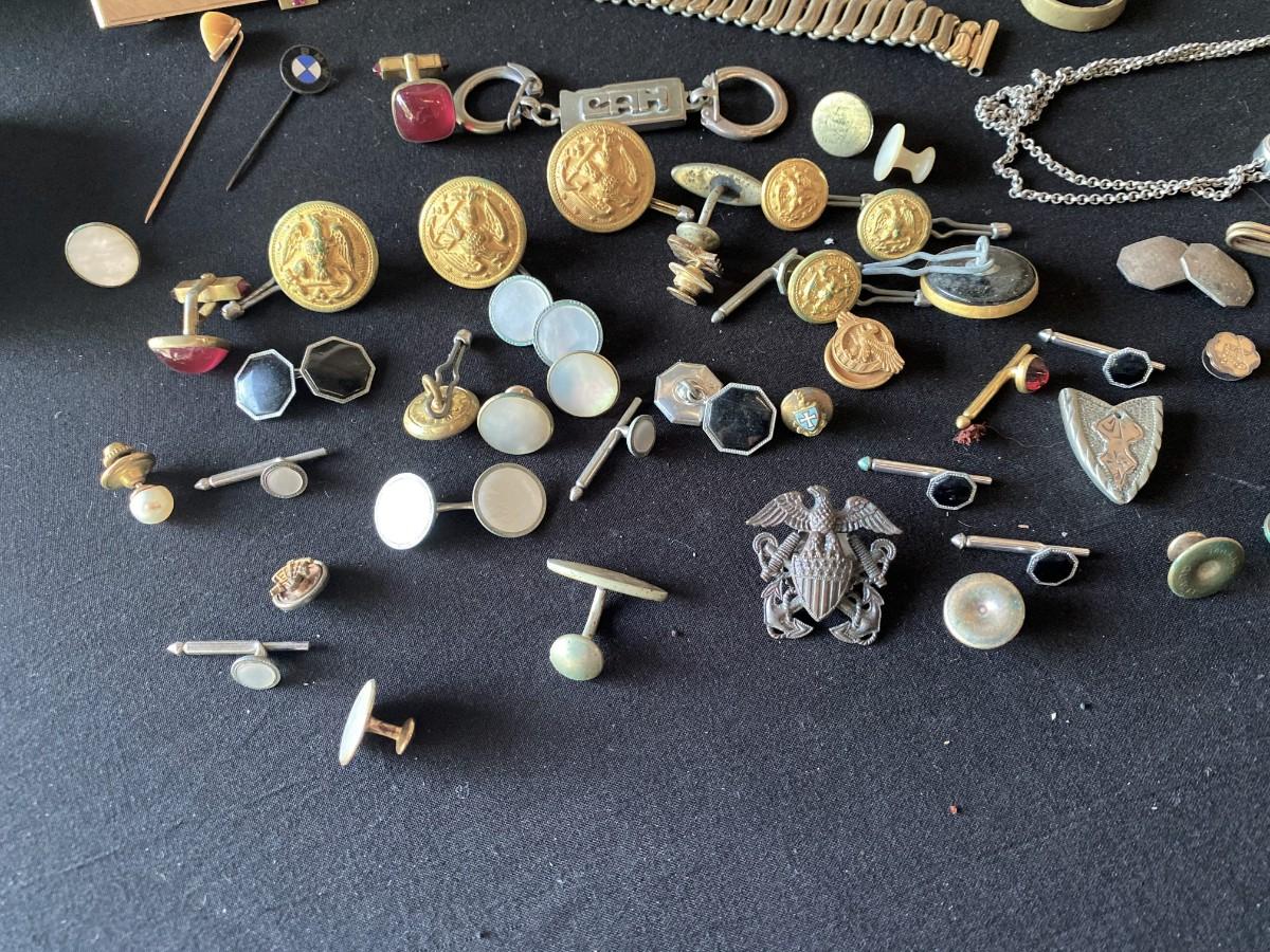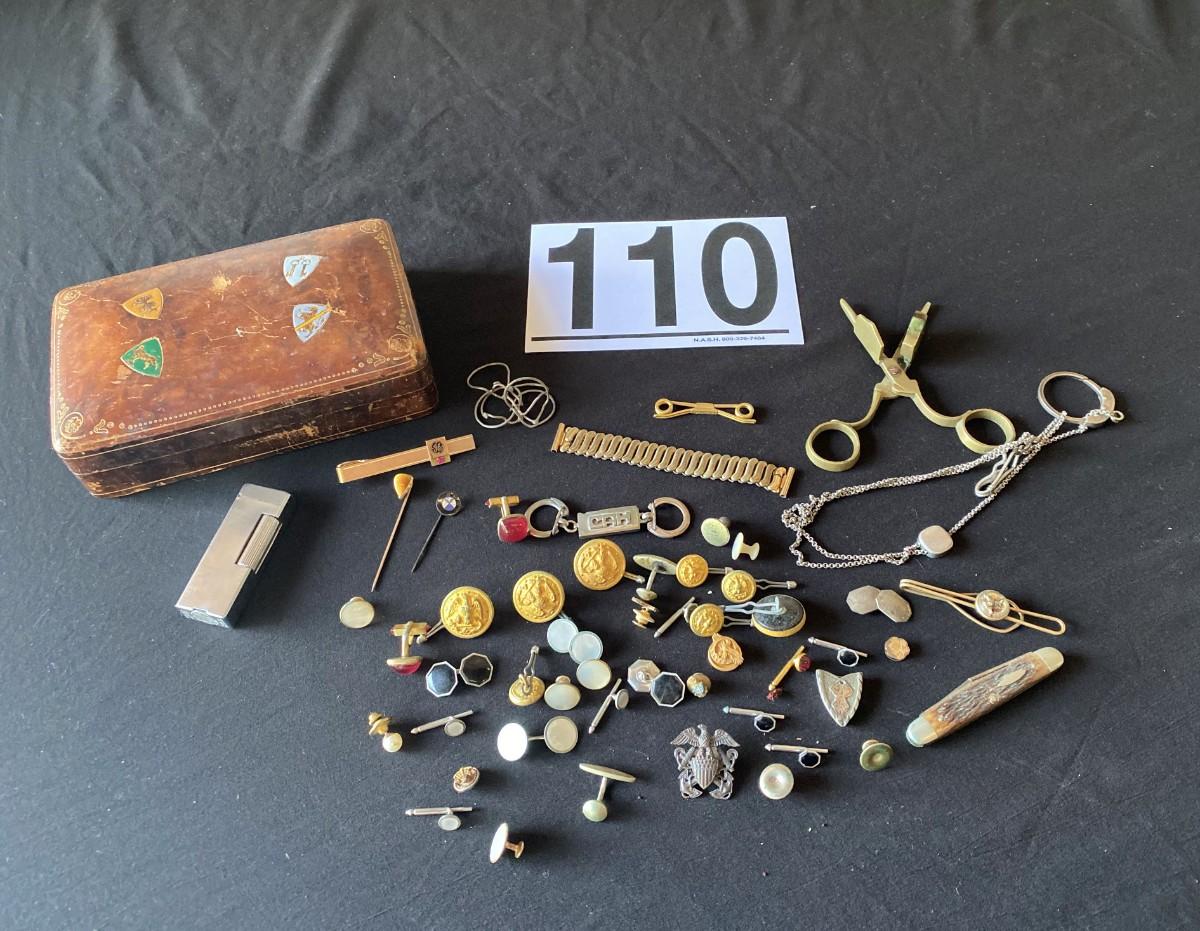 Includes: cuff links, Naval buttons, stick pins, Dunhill lighter & more.