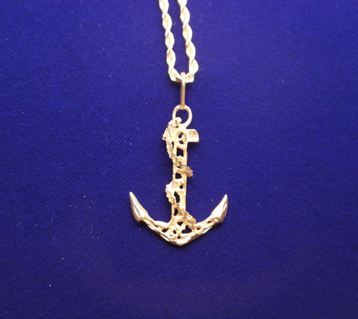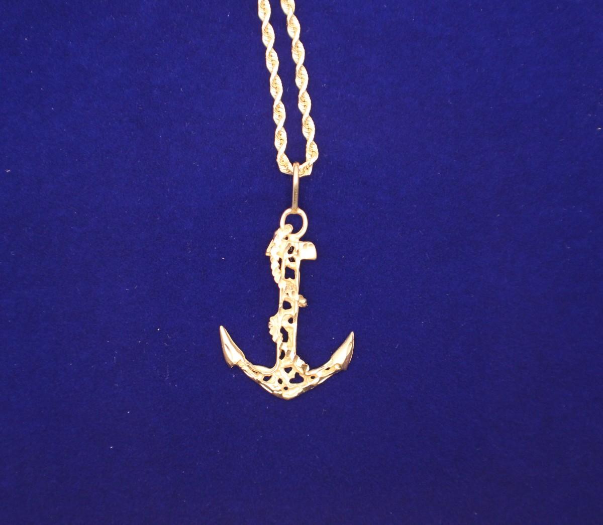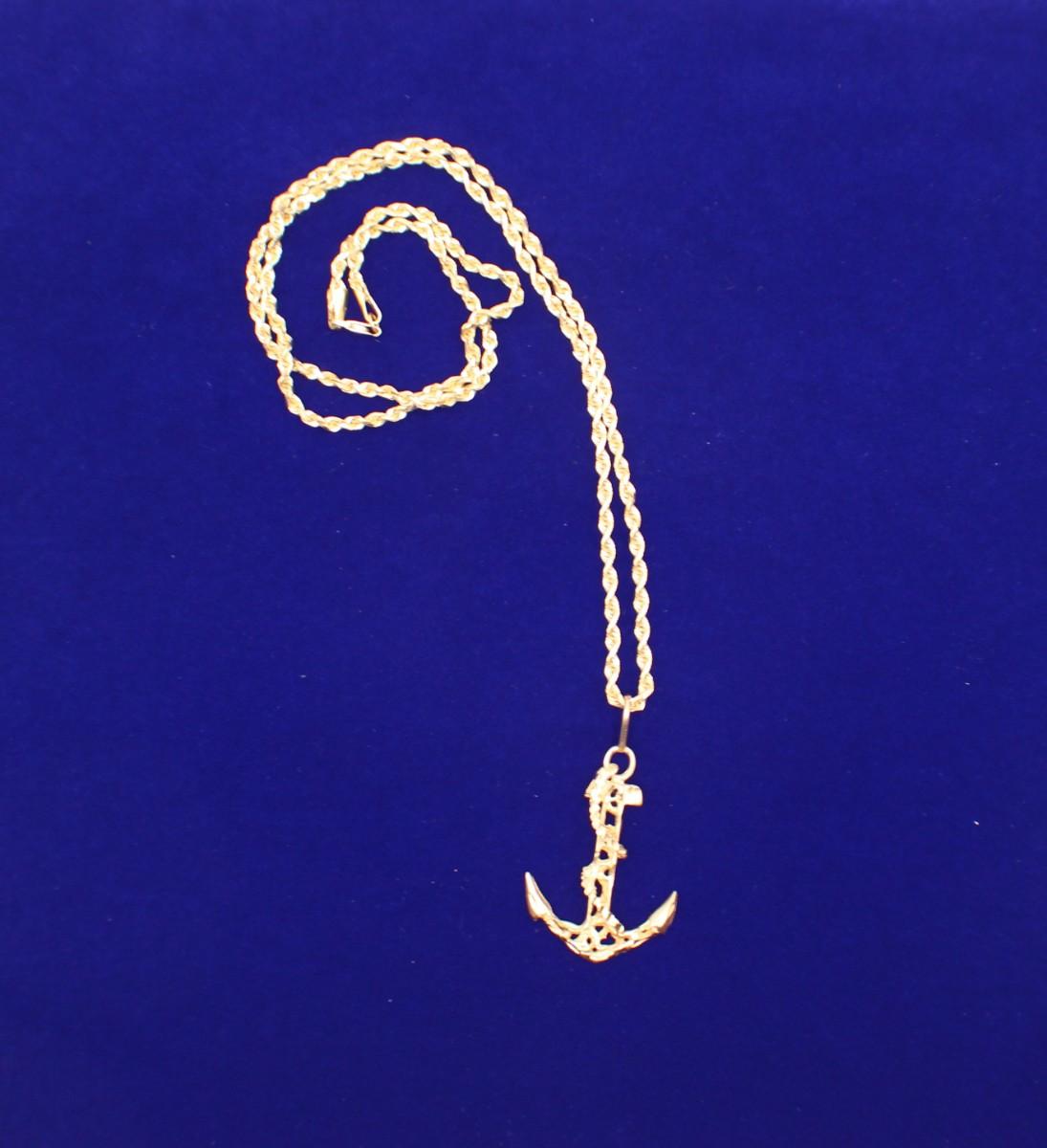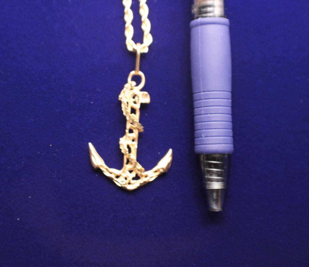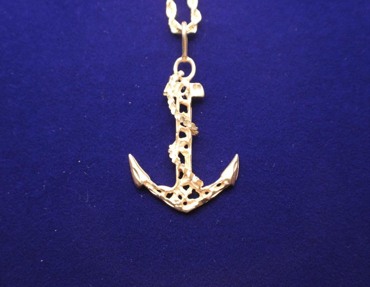LOT#111: Stamped 14K Diamond Cut Anchor Pendant & Chain [8.97g]