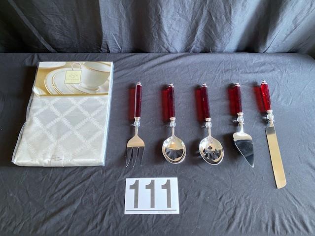 Includes table cloth, serving fork, servicing spoons, servicing spatula, & serving cake cutter.