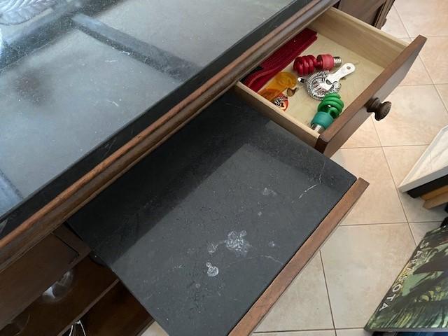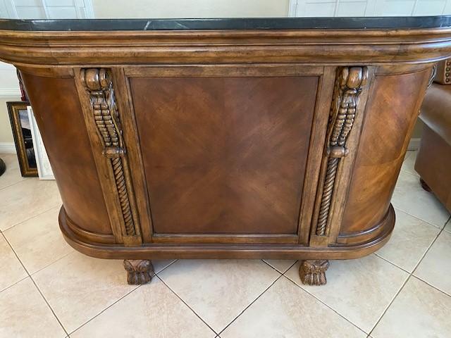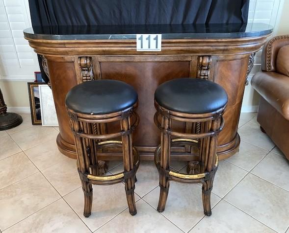 LOT#111LR: Marble Top Bar with Hooker Furniture Barstools