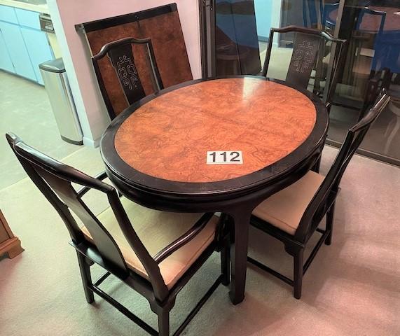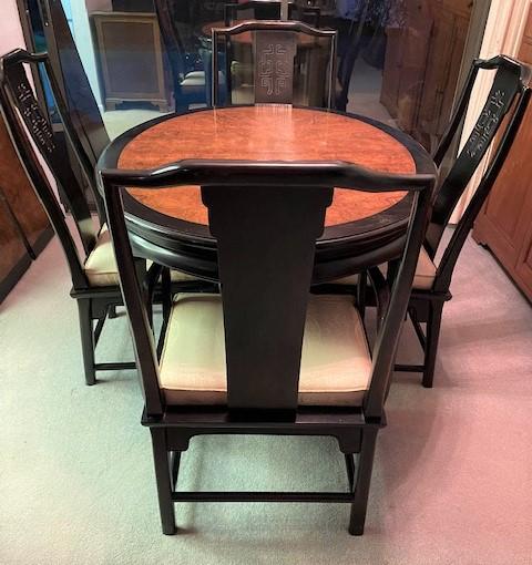 LOT#112LR: Asian Lacquered Dining Table w/ 6 Chairs & 2 Leaves