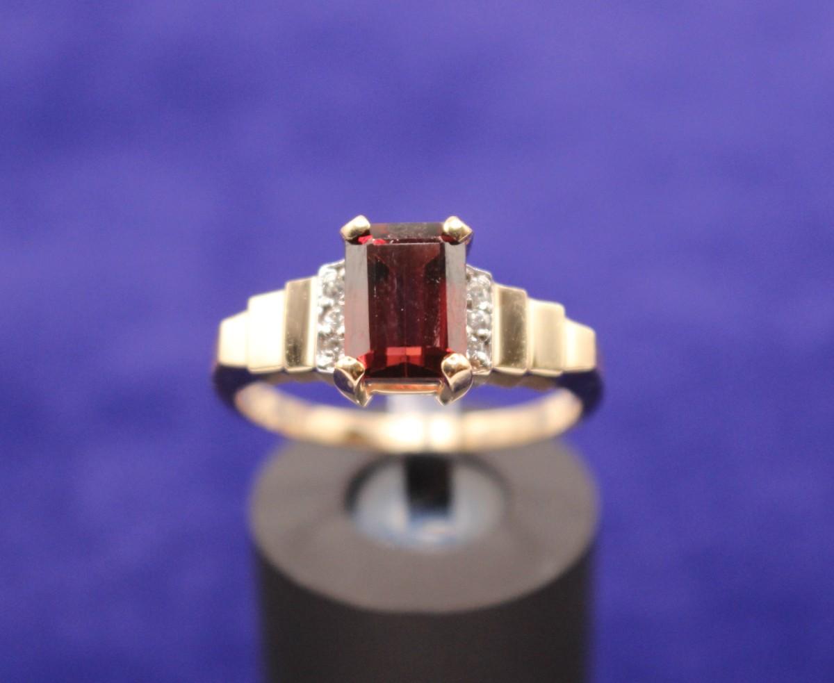 LOT#113: Stamped 14K Tourmaline & "Diamond" Ring [3.33g]