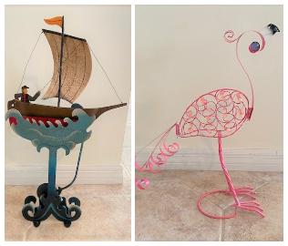 LOT#113K: Pink Flamingo & Counter Weighted Sailing Ship