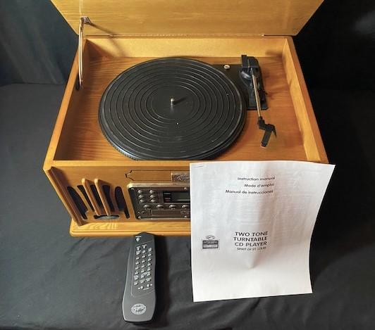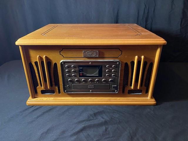 Includes turntable, CD, cassette & remote. This item has been tested and works. Estimated weight of lot: 10lbs. Measurement: 18"W x 14"D x 9 1/2"H