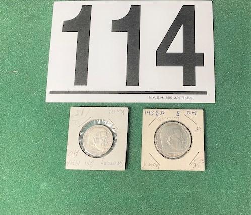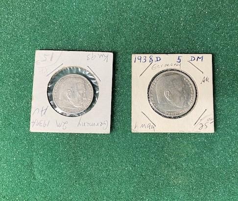 LOT#114B: 1938S & 1939A Deutsche Mark Coins