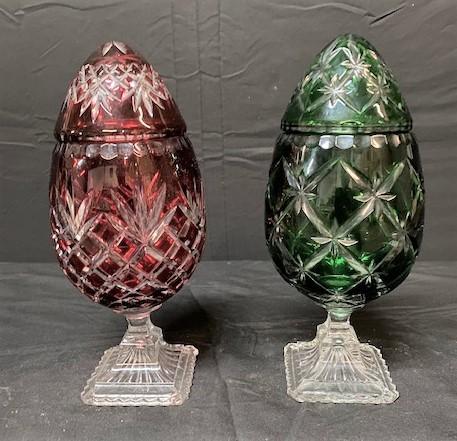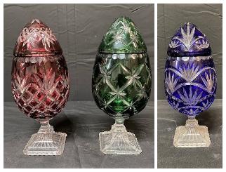 LOT#115: Cut Glass Eggs on Pedestal