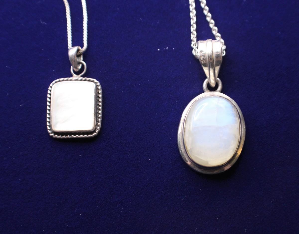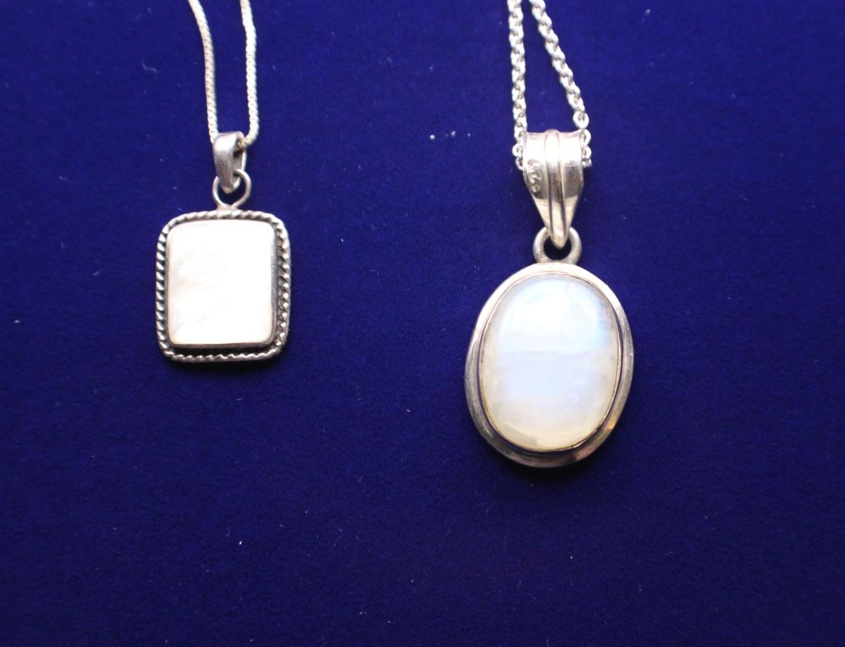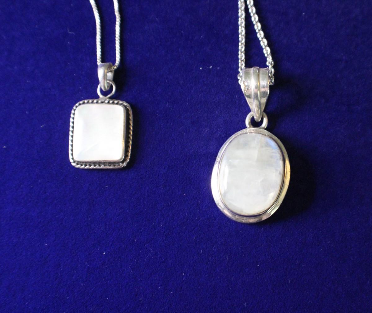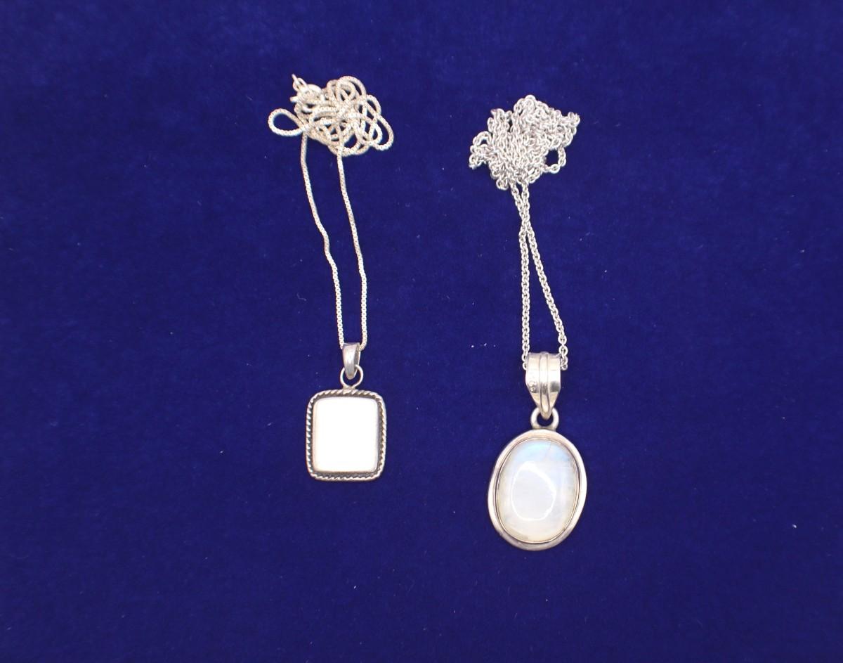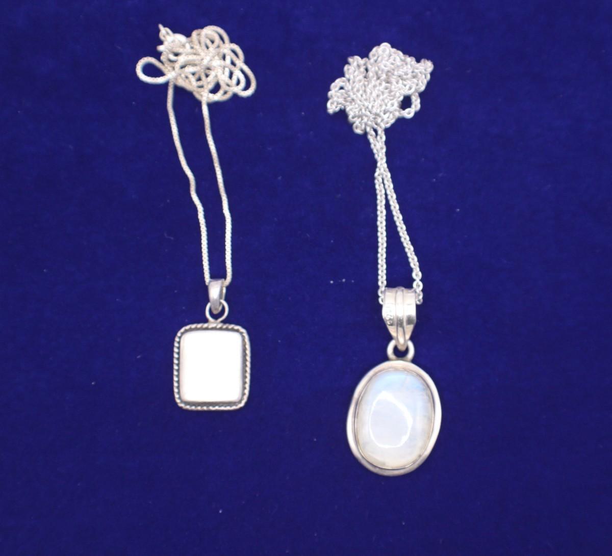 LOT#116: Pair of Marked .925 Moonstone Pendants with Necklaces