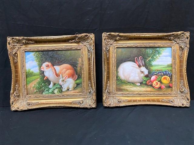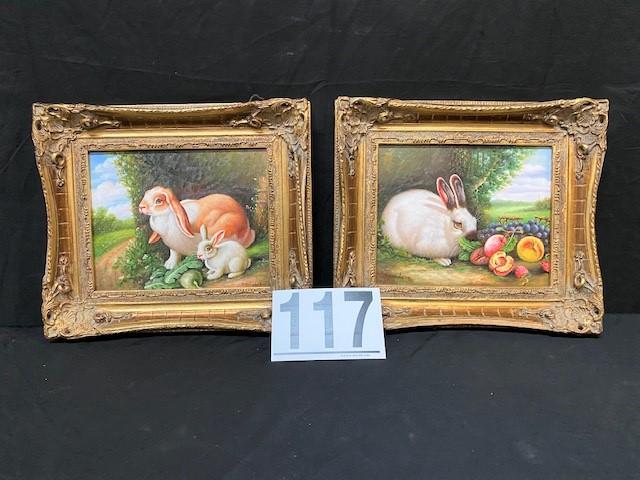 Signed "S Rayder". Gesso on frames has some damage and pieces missing. Estimated total lot weight: 10lbs. Measurement: 14 1/2"W x 12 1/2"H (each)