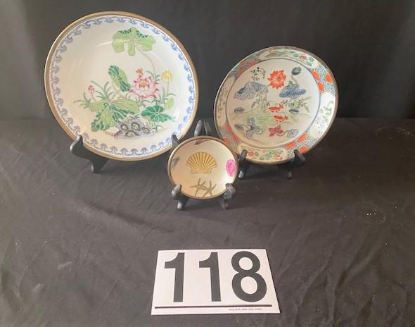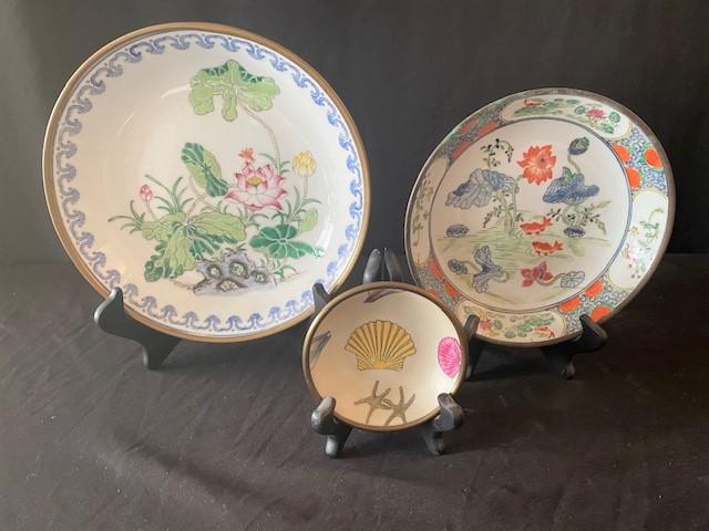 Hand painted. Flowers & shells motif. Estimated weight of lot: 10lbs. Measurement: 2"H x 9 1/2"diameter (largest)