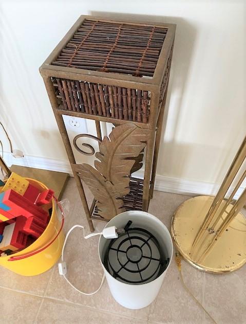 2 floor lamps. One Coche & Lowy; Holtkoetter. One canister lamp, plant stand & mega blocks