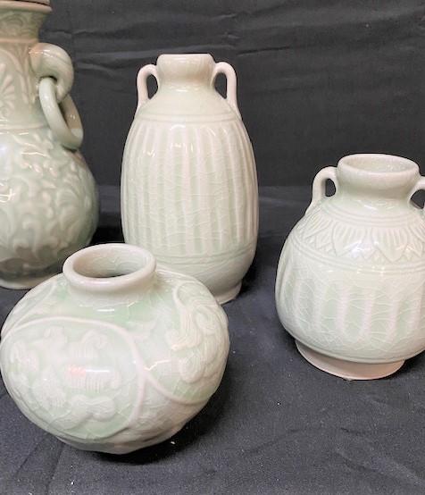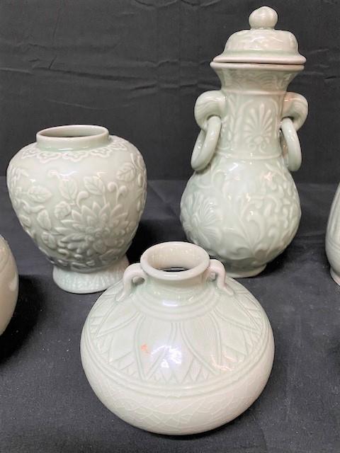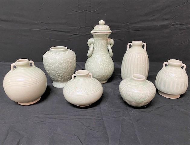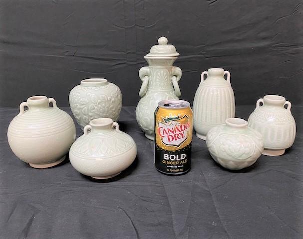 Some numbered & signed. All jars- one is covered. Measurement: 9"H (Tallest); 5"W (Widest)