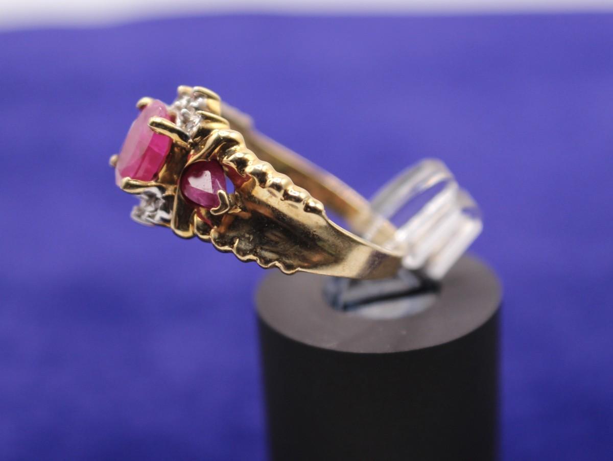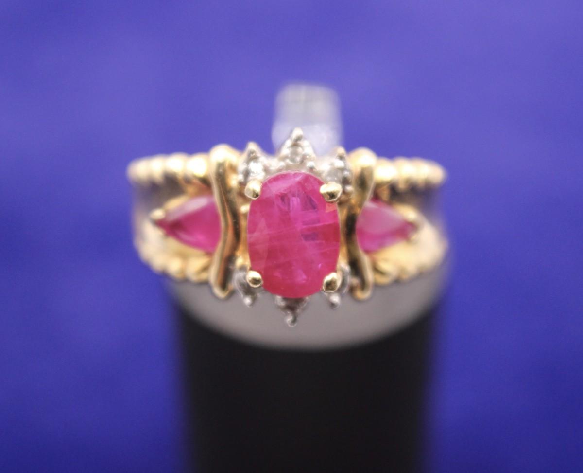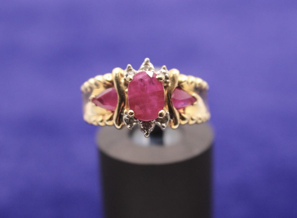 LOT#120: Stamped 10K "Ruby" & "Diamond" Ring [3.33g]