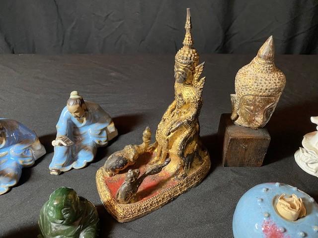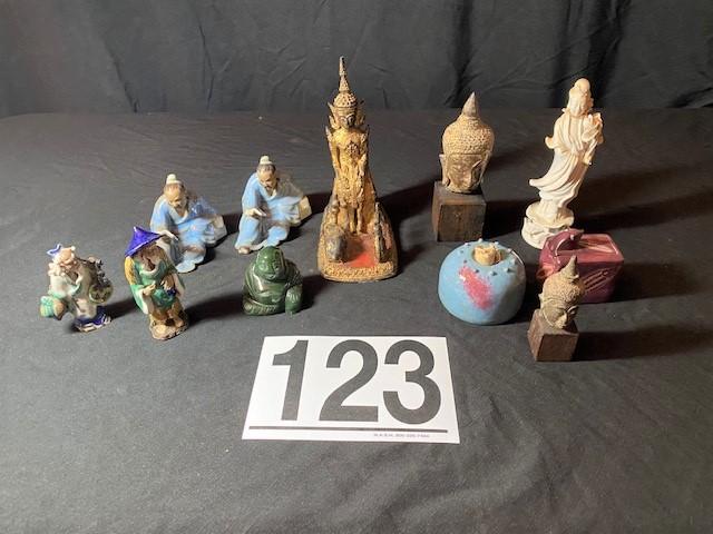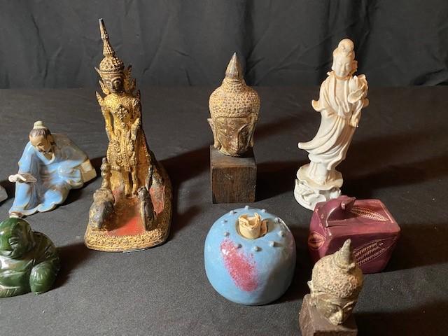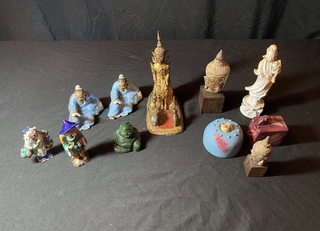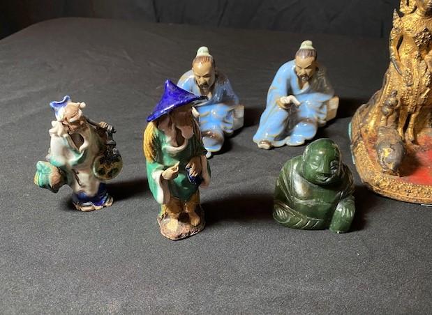 Includes: Jade, mud men, Buddhas & more. Estimated weight of lot: 8lbs. Measurement: 6 1/2"H x 5"W (largest)