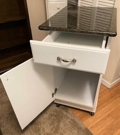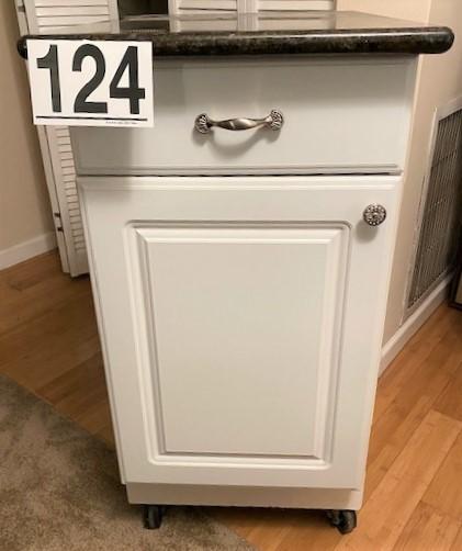 LOT#124LR: Marble Top Cabinet on Wheels