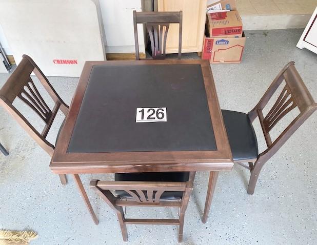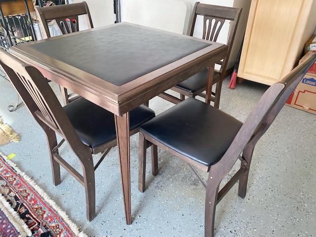Includes four folding chairs. Measurement: 29"H x 30"L x 30"W (table) 33"H (chairs, each)