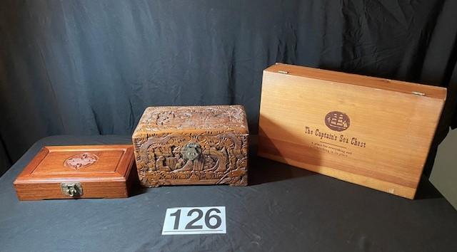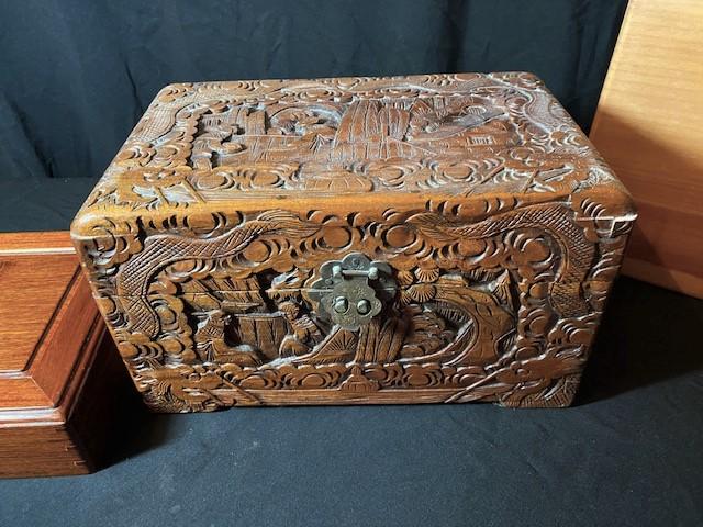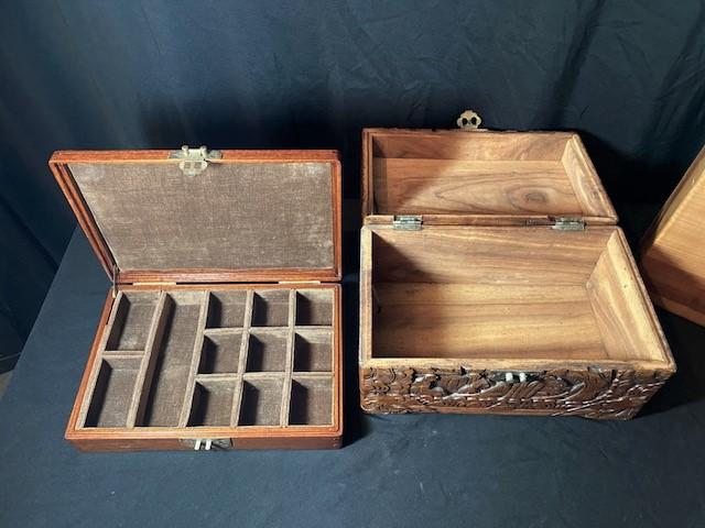 Includes: Camford Wood, a jewelry box & wine box. Estimated weight of lot: 5lbs. Measurement: 17 1/2"L (tallest; wine box) | 7"W (widest; Camford box)