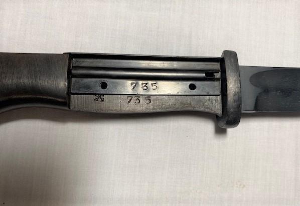 Missing pommel. SN# do not match. Bayonet SN#735. Estimated weight of lot: 2lbs. Measurement: 16" x 1 1/2"