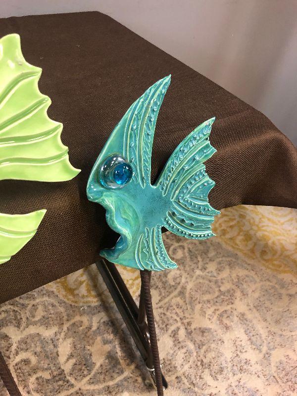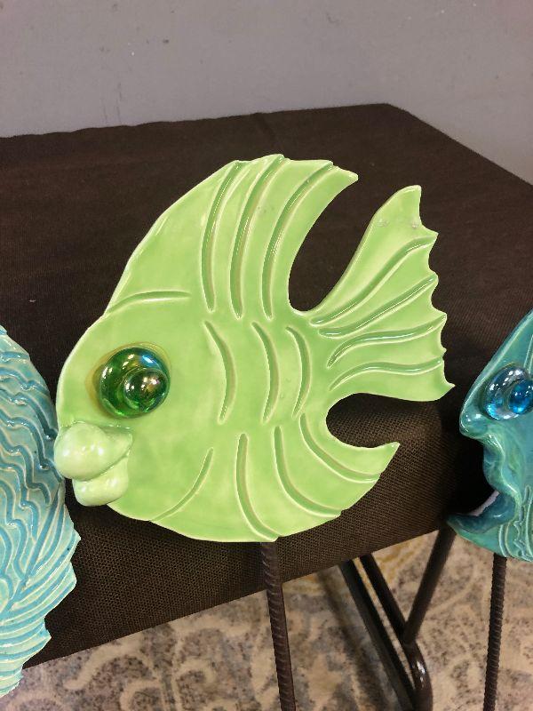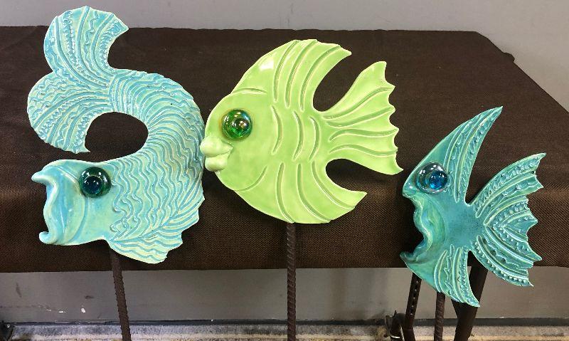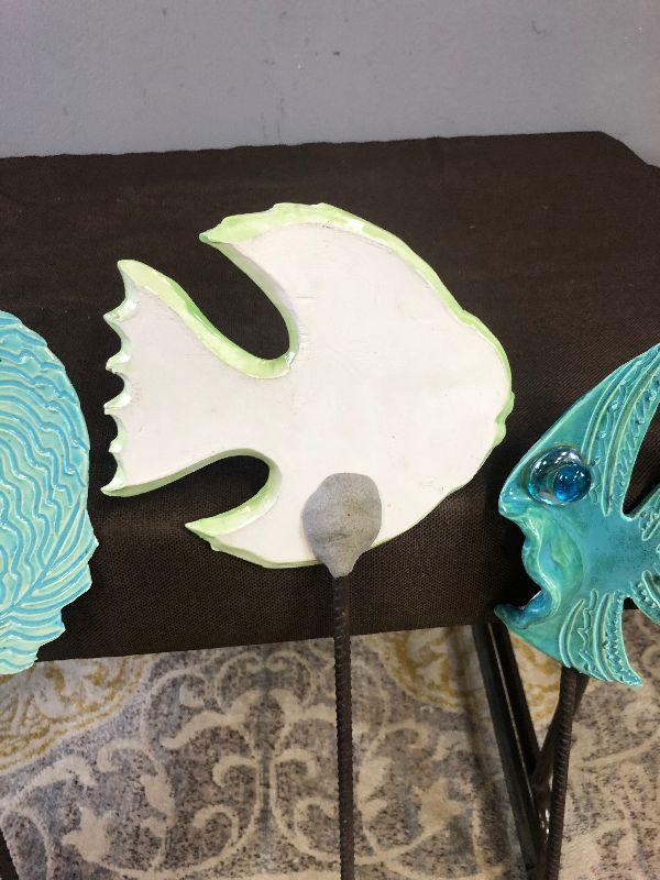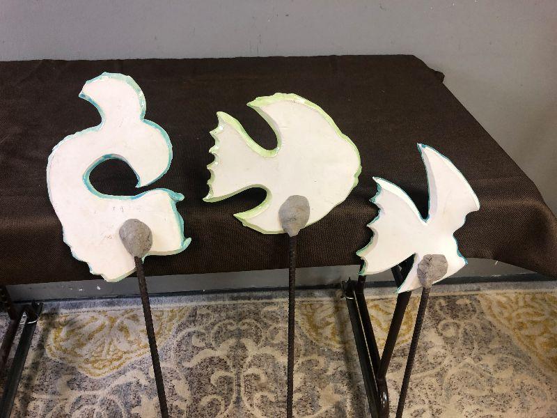 Lot#128 (3) Ceramic / Rebar garden Stakes