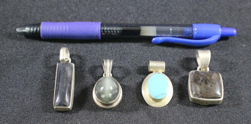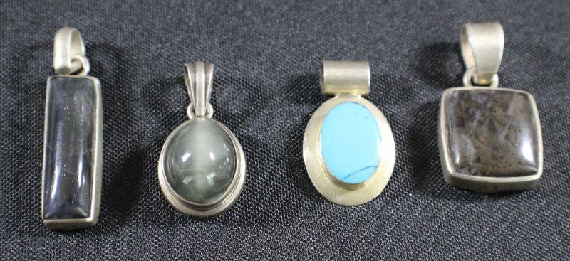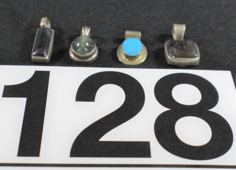LOT#128: 4 Sterling Pendants with Mixed Stones