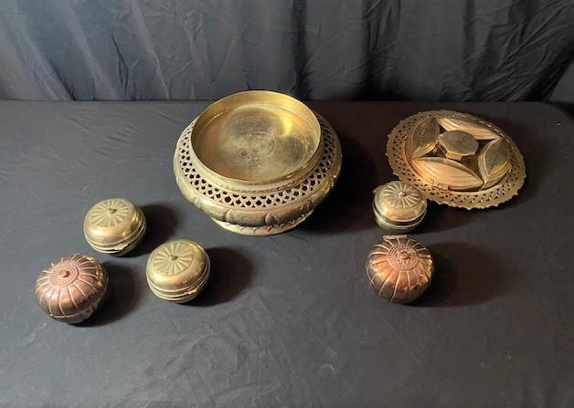Includes: censor, trinket boxes & more. Estimated weight of lot: 15lbs. Measurement: 11" diameter x 5 1/2"H (largest censor)