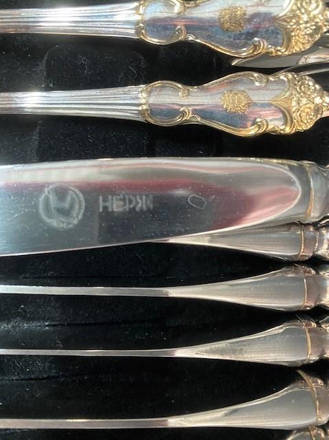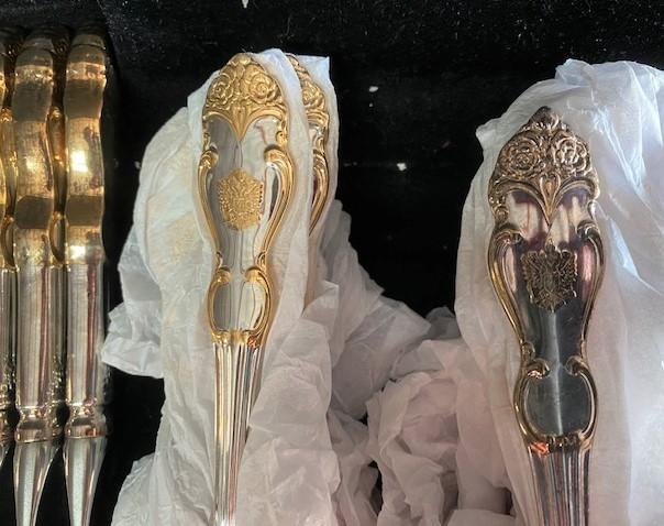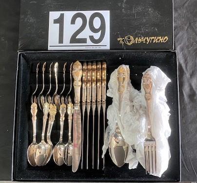 30 pieces. Includes: dinner forks, soup spoons, teaspoons, dessert spoons, knives & more. In original box.