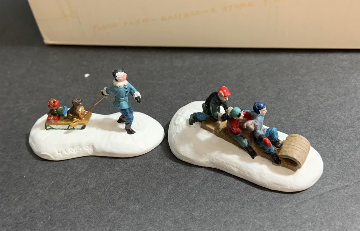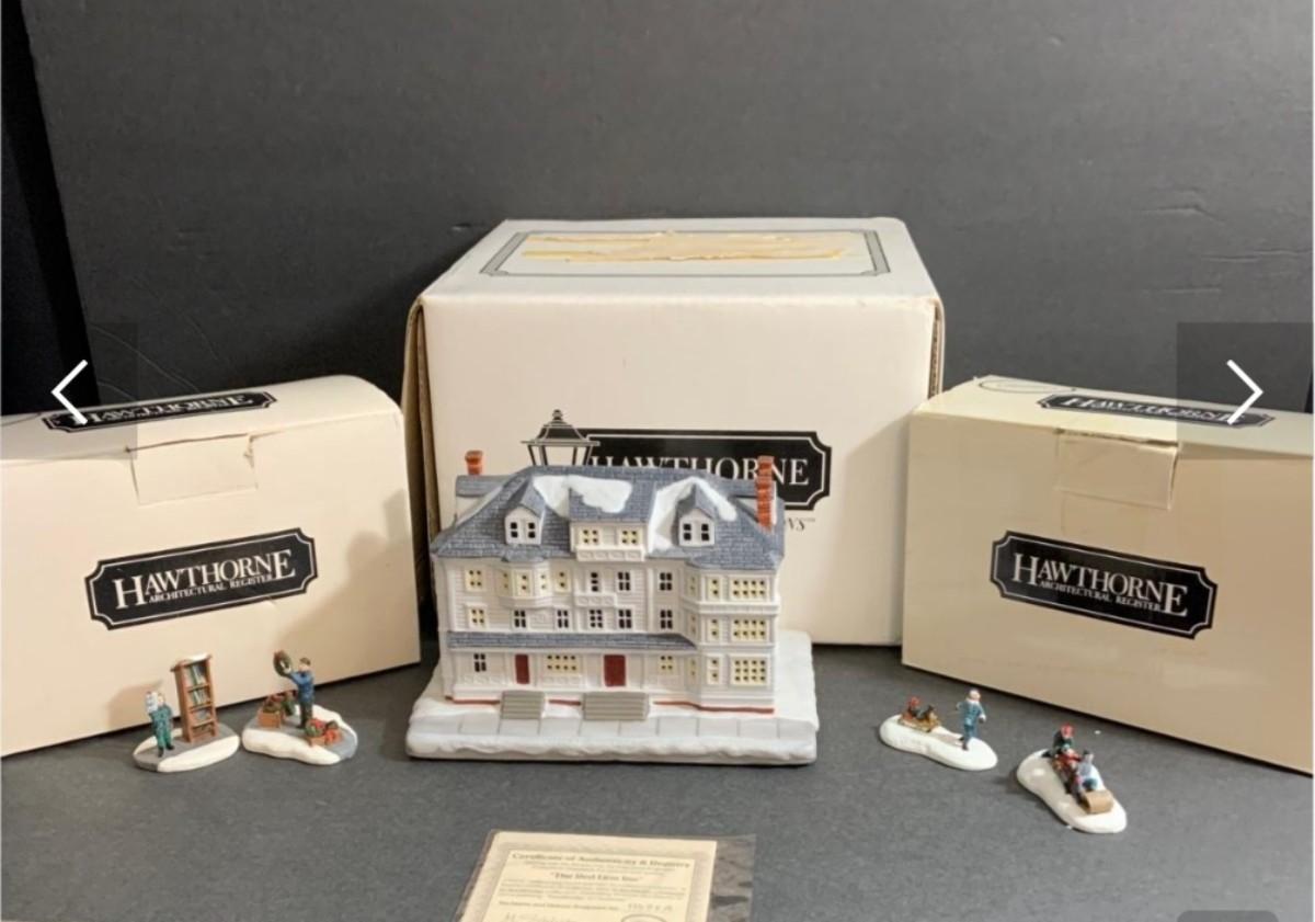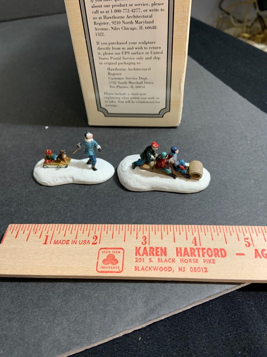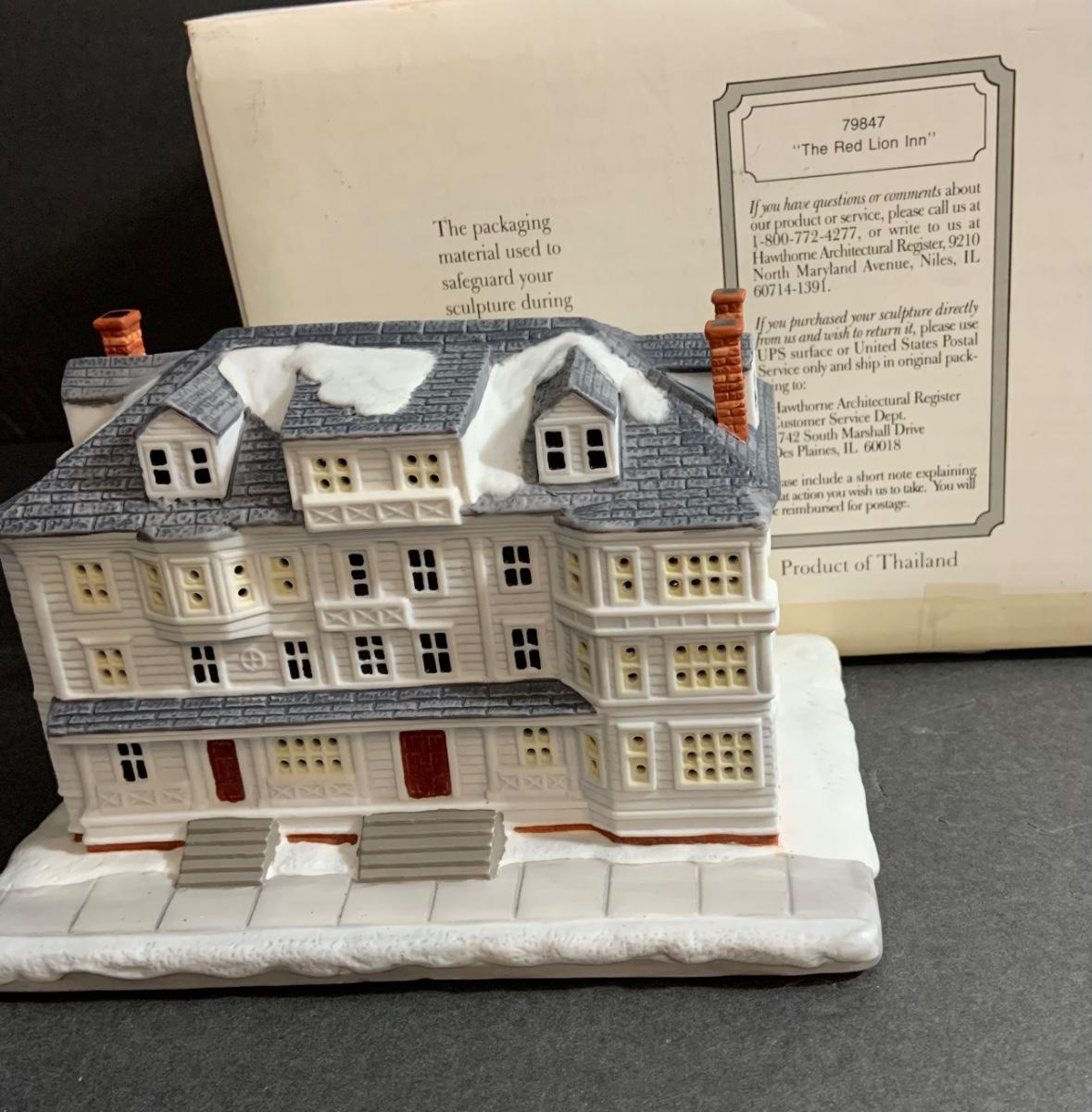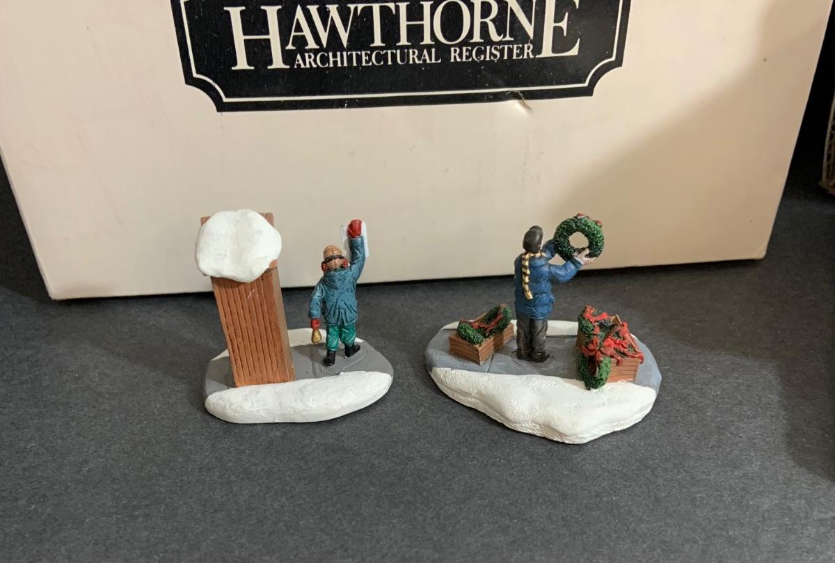 Lot:120: Lot of Hawthorne Village pieces- Christmas in Stockbridge Collection " The Red Lion Inn", Sidewalk Sellers and Slipping and Sliding