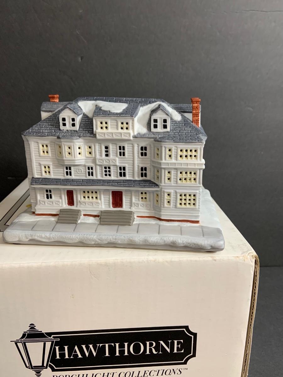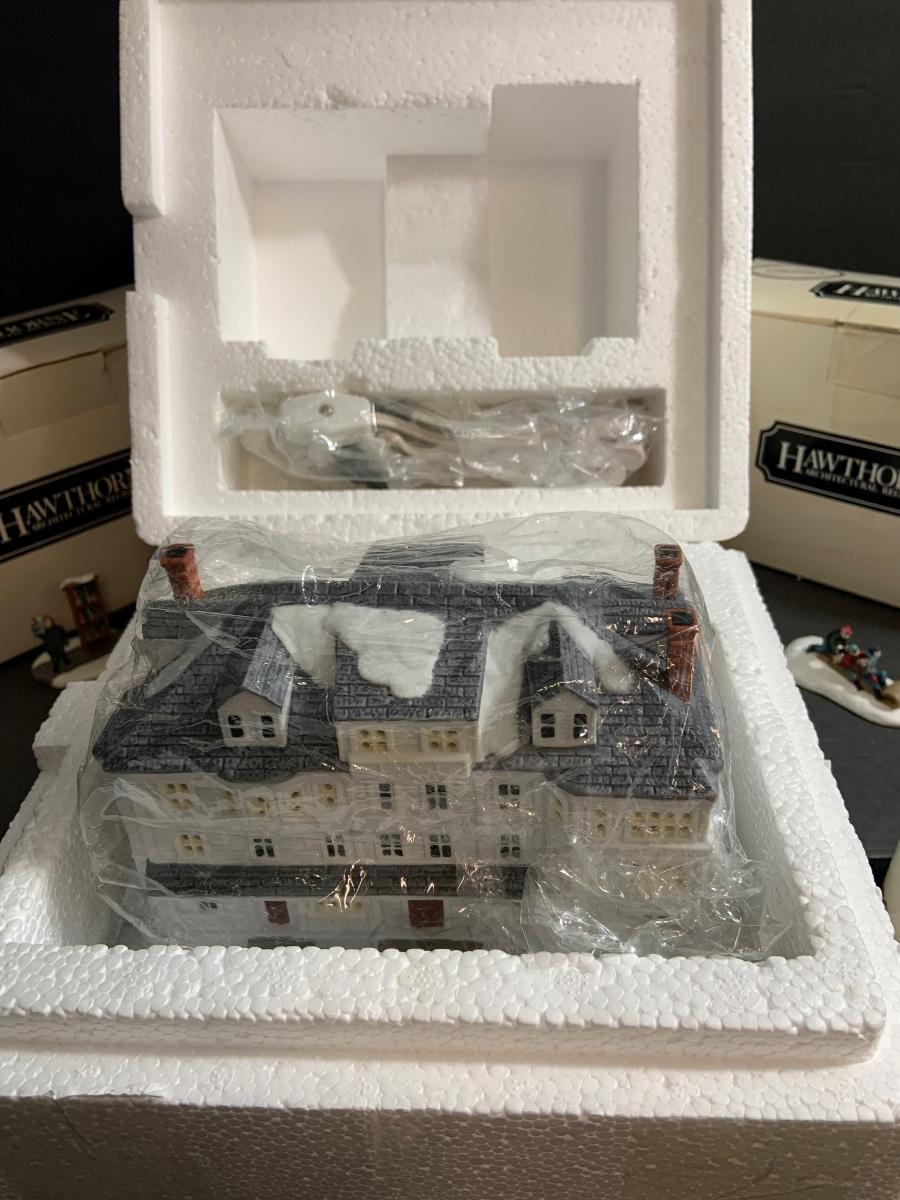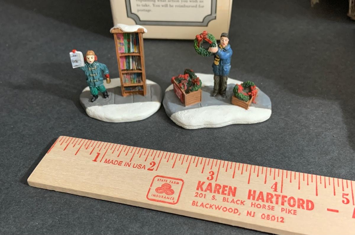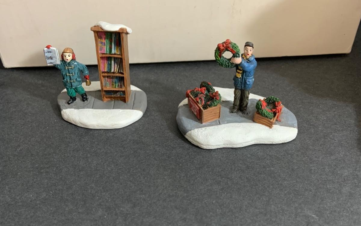 Lot:120: Lot of Hawthorne Village pieces- Christmas in Stockbridge Collection " The Red Lion Inn", Sidewalk Sellers and Slipping and Sliding