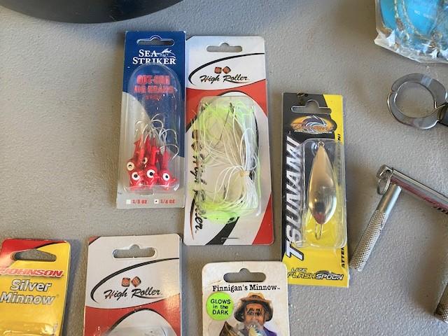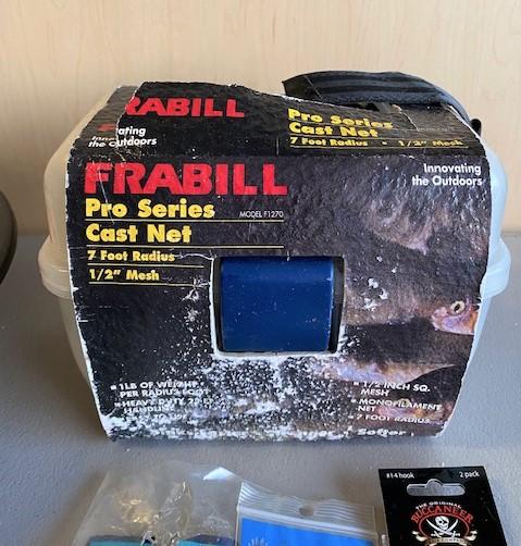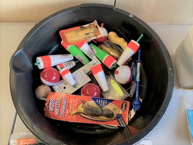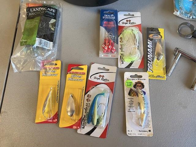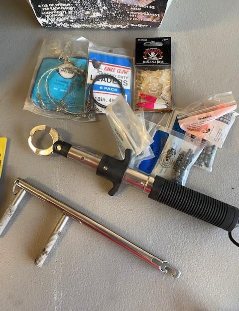 Includes bobbers, lures, sinkers, unopened cast net, and more.