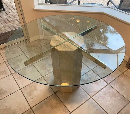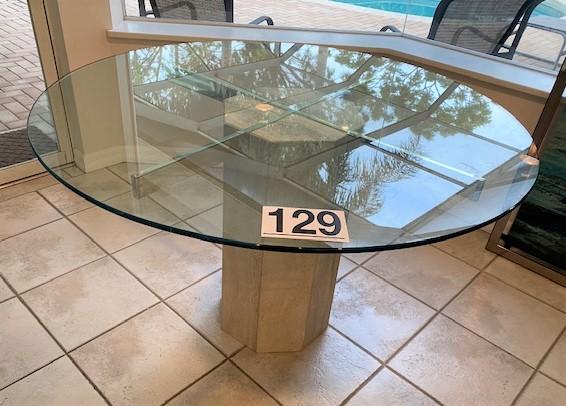 LOT#129K: Glass Top Table with Marble Pedestal