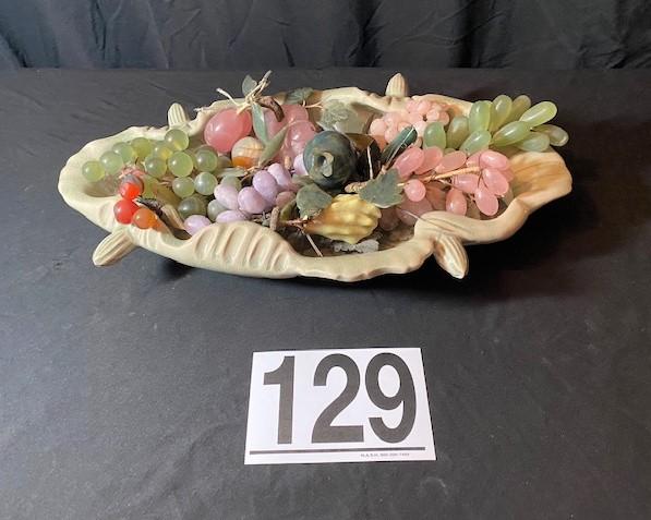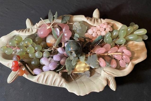 Includes: Jade, Alabaster & other stone. Grapes and other fruit are independent of bowl. Estimated weight of lot: 20lbs. Measurement: 20"L x 10"W