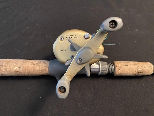 Rod is a Saint Croix Pro-Glass Model GC-66M. Rod is 6' 6" long. Reel is a Shimano Calyx CYX200.
