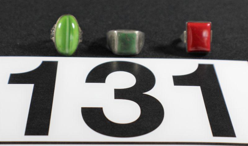 LOT#131: 3 Marked & Unmarked Sterling Rings with Semi Precious Stones